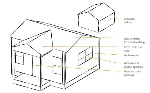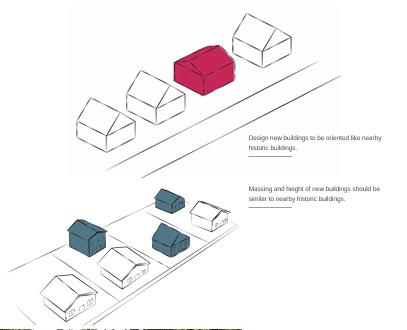 These cities have design guidelines for accessory dwelling units and structures in their historic districts. I looked at their design guidelines that focus on visibility from the primary street, mass, form, and design. The design guidelines helped inform me on the types of graphics, and the graphic styles I should use in the drawings.