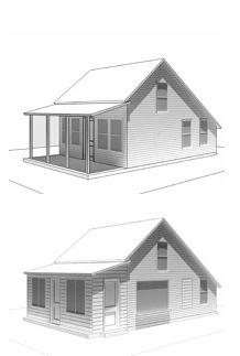 Top: The front porch and window configurations are original. Bottom: Window openings have been altered and the front porch enclosed. These treatments are incompatible and should be avoided. (2009). Graphic, Park City Utah.
