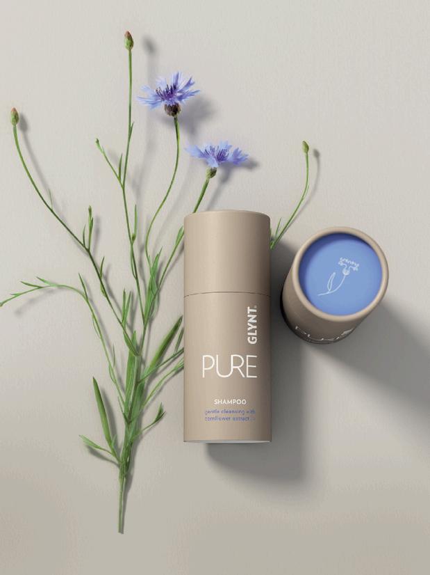PURE PURE é o primeiro shampoo GLYNT que não utiliza água e é oferecido em embalagem de papel Somente no banho é adicionado ao shampoo a água necessária para que se desenvolva uma espuma cremosa. Isto significa que se pode prescindir das habituais embalagens de plástico para shampoo.