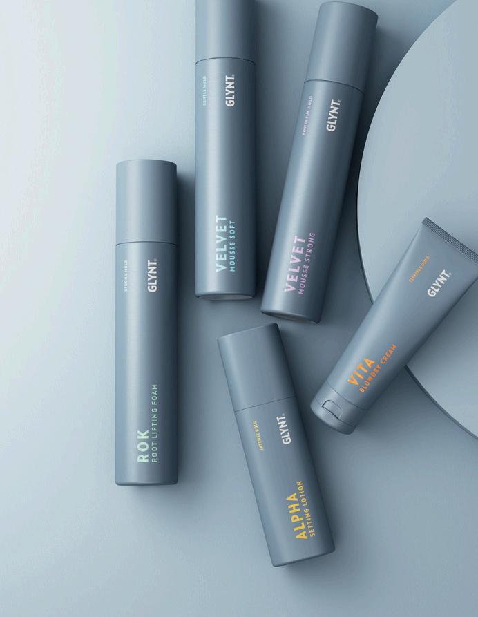 2. VELVET MOUSSE SOFT, 200 ml: Proporciona uma fixação flexível e natural. Um condicionador integrado garante um preenchimento extra macio. A mousse é adequada para cabelos que necessitam de cuidados ou para cabelos muito fortes | 3 VELVET MOUSSE STRONG, 200 ml: Proporciona fixação forte e plenitude extra Esta mousse é particularmente adequada para cabelos finos para dar mais volume às raízes. Não adere, apesar da fixação forte. Pode ser penteado sem deixar resíduos | 4 ALPHA SETTING LOTION, 150 ml: Loção fixadora clássica para secar com o secador que dá elasticidade, dinamismo e força a todos os cabelos Tempo de secagem curto, sem efeito pegajoso no cabelo, sem deixar resíduos ao pentear. | 5. VITA BLOWDRY CREAM, 125 ml: Creme hidratante para secar o cabelo. Combina cuidado e volume ao pentear, tem um aspeto muito natural e não é pegajoso Suporta a estrutura do cabelo durante a secagem com o secador ou ao ar livre com uma fixação suave e flexibilidade