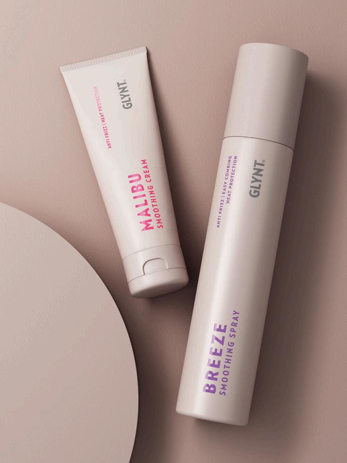 1. MALIBU SMOOTHING CREAM, 125 ml: Creme anti-frizz suavizante para um cabelo sedoso, brilhante e flexível. Com efeito de proteção térmica - perfeito para trabalhar com o alisador. | 2. BREEZE Smoothing Spray, 200 ml: Alisa a superfície do cabelo e garante que a hidratação não provoca um efeito frisado indesejado. Torna-o fácil de pentear. Evita que o cabelo fique carregado estaticamente por secadores de cabelo ou ferramentas de modelação.
