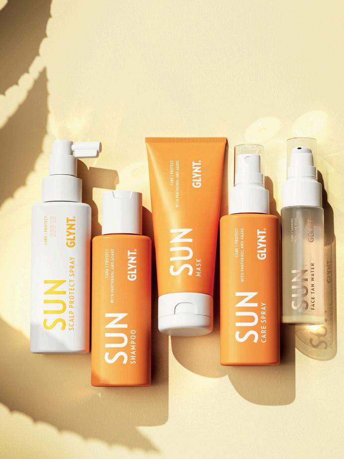 1. SUN Scalp Protect Spray SPF 15, 100 ml: Proteção solar especial para o couro cabeludo. Com filtros UVA e UVB. Composição leve e não oleosa. Ideal para utilizar na linha do cabelo, mechas e áreas finas do couro cabeludo Pulverizar nos cabelos húmidos várias vezes ao dia | 2 SUN SHAMPÔ, 100 ml: Remove suavemente a areia e o sal do cabelo e dá-lhe um impulso extra de hidratação | 3. SUN MASK, 100 ml: Os cabelos afectados pelo sol experienciam uma verdadeira recuperação. O tratamento não só hidrata, como também melhora a estrutura do cabelo e dá-lhe nova resistência e elasticidade. | 4. SUN CARE SPRAY, 100 ml: Spray para cuidados com os cabelos de praia Protege os cabelos do sol, água salgada e vento Promove uma hidratação intensa e mantendo o cabelo solto | 5. SUN FACE TAN WATER, 30 ml: Tónico autobronzeador para rosto, pescoço e decote
