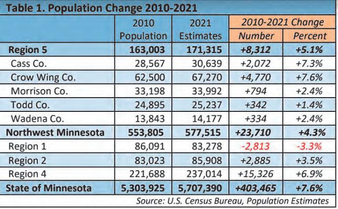 to hold steady over the next decade. Population projections from the Minnesota State Demographic Center show an expected gain of just 337 residents from 2023 to 2033, a 0.2% increase. By comparison, the projected growth statewide from 2023 to 2033 is 5.6%. Then the region may start losing residents over the following decade.”
