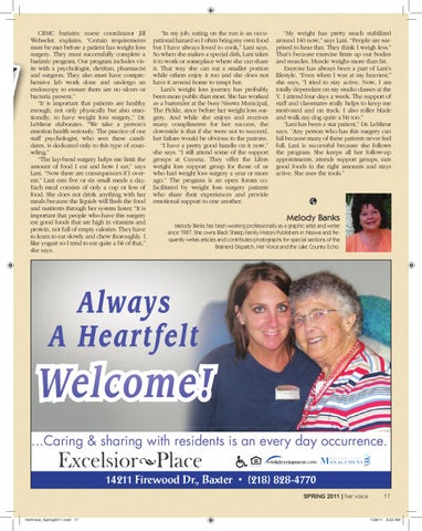 Welcome! ...Caring & sharing with residents is an every day occurrence. 14211 Firewood Dr., Baxter • (218) 828-4770 SPRING 2011 | her voice
