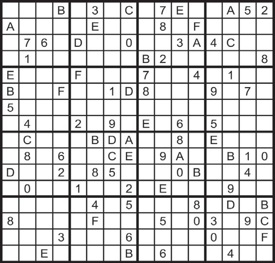 in the grid so that every row, every column, and every 4x4 box contains the digits 1 through 9. AND the letters A through F. Solution below
