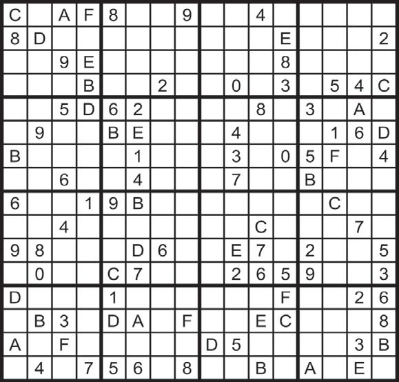 Extreme Sudoku Fill in the grid so that every row, every column, and every 4x4 box contains the digits 1 through 9. AND the letters A through F. Solution below