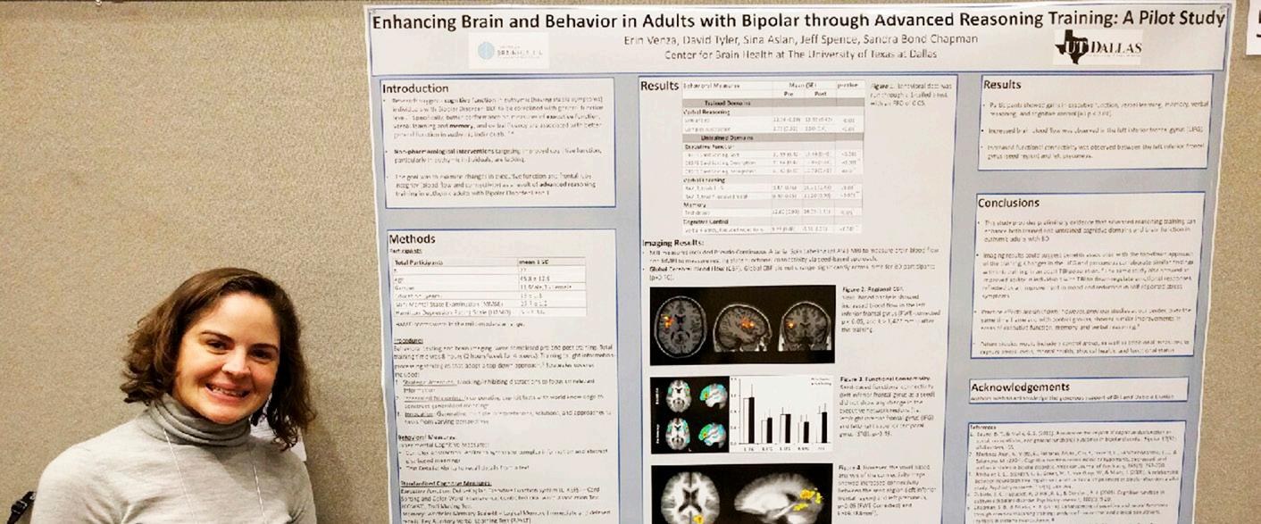 Clinician Erin Venza, M.S., CCC/ SLP presented Cognitive Changes after Reasoning Training in Individuals with Bipolar Disorder Study results provide preliminary evidence that eight hours of gist-based reasoning training can enhance cognitive performance in adults with Bipolar Disorder. Findings showed significant gains in the trained domain of abstract reasoning as well as the untrained domains of inhibition, mental flexibility, and memory.