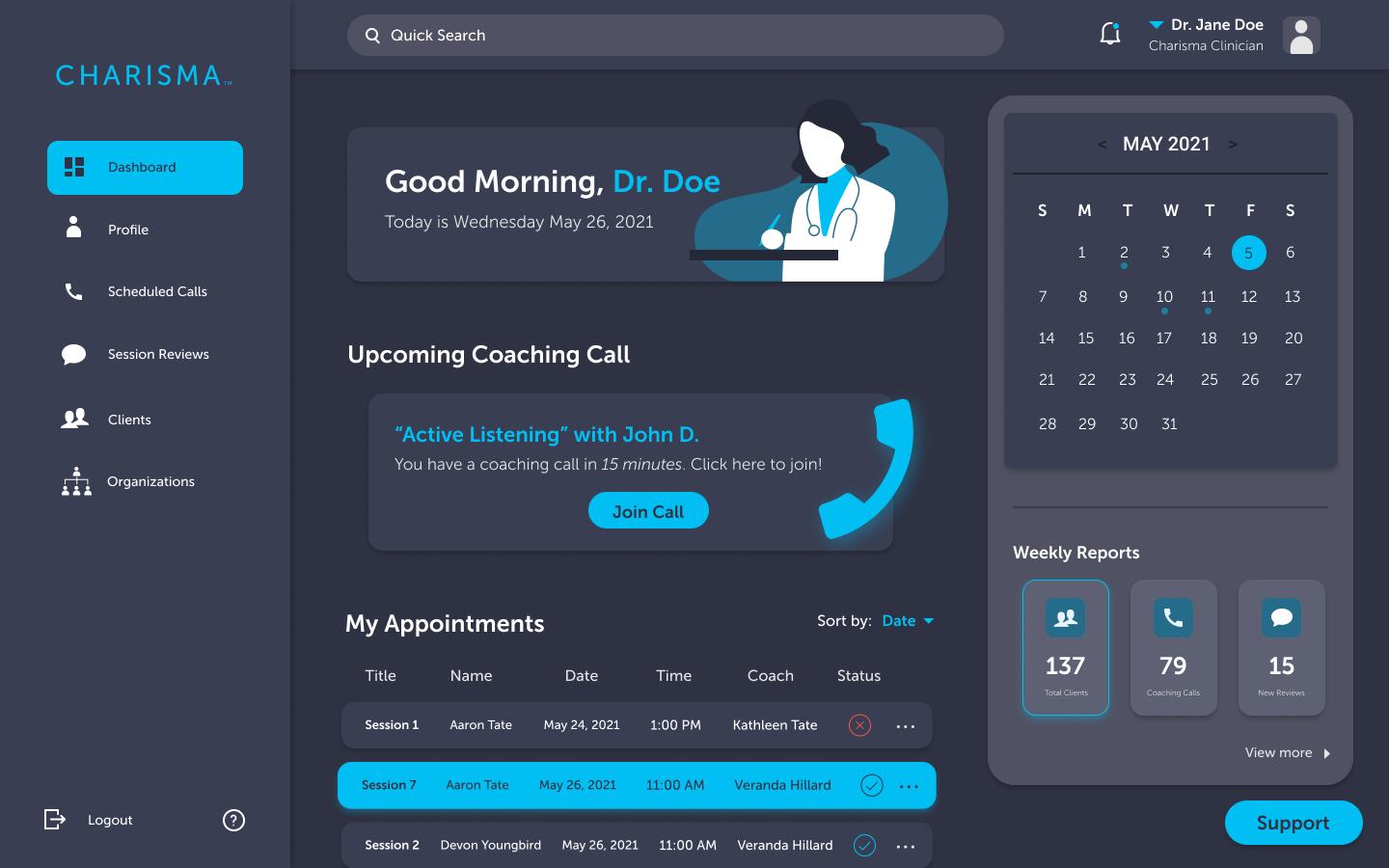 "Charisma isn’t difficult to use. It is intended to be utilized by people of nearly all ages and levels of technical understanding. This is a growing field, and this program is ever-developing in order to provide the best experience for both coach and client. I work with individuals 8 years and up and love technology. I am really excited to utilize this program with my clients."