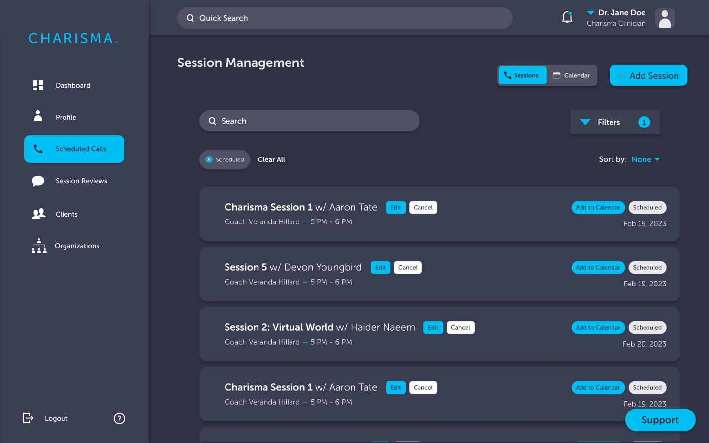Coaches are fully prepared for success with Charisma through a single training fee. After this initial investment, charges apply solely for the Charisma sessions booked for each client.
