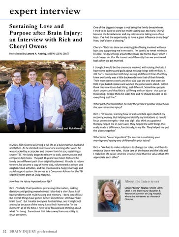 expert interview Sustaining Love and Purpose after Brain Injury: an Interview with Rich and Cheryl Owens Interviewed by Lenore A. Hawley, MSSW, LCSW, CBIST