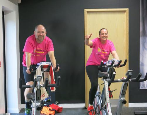 charity supporters at Swan Pool in Buckingham. Local companies generously gave bottles of water and Mars bars to help fuel them through the grueling two-hour pedalling session. There were sore bums all round by the end of the event, but the team were still smiling and raised nearly £2,000, including Gift Aid. The day was finished off nicely by a timely delivery from Direct Pizza, which was very much appreciated!