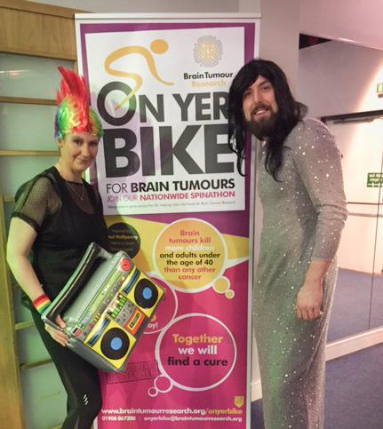 people took part and to spruce things up a little, every hour they had different themed music; from eighties to northern soul and rock classics. The usual shorts and Lycra were even combined with fancy dress –wigs and sweatbands all round! They received donations of over £3,500, smashing their target and raising enough to fund a day of research and place a tile on one of our Walls of Hope.