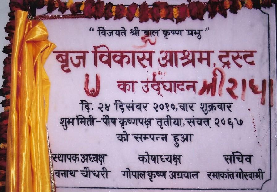 ब्रज विकास आश्रम ट्रस्ट बृज क्षेत्र की धार्मिक, सांस्कृतिक और प्राकृतिक धरोहरों के संरक्षण एवं पुनरुद्धार के लिए समर्पित एक संस्था है। यह ट्रस्ट मंदिरों, सरोवरों और अन्य ऐतिहासिक स्थलों के पुनर्निर्माण और सौंदर्यीकरण के लिए कार्यरत है। साथ ही, सनातन संस्कृति एवं परंपराओं को संजोने के लिए विभिन्न सामाजिक और आध्यात्मिक गतिविधियाँ भी आयोजित करता है।