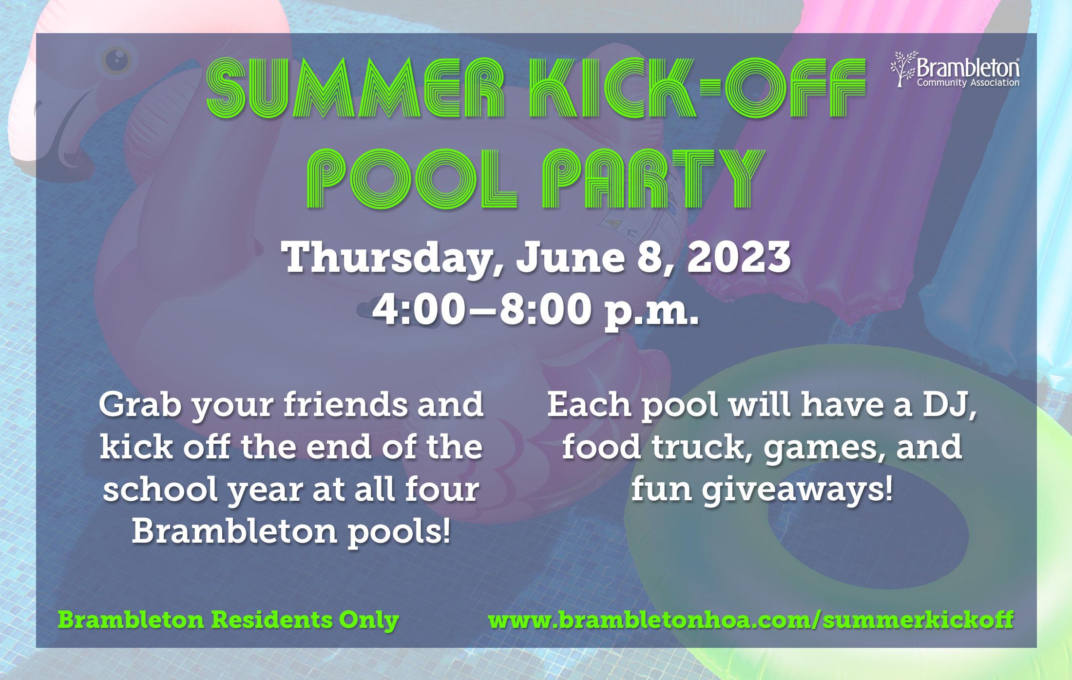 June 8: Summer Kick-off Pool Party, 4–8 PM