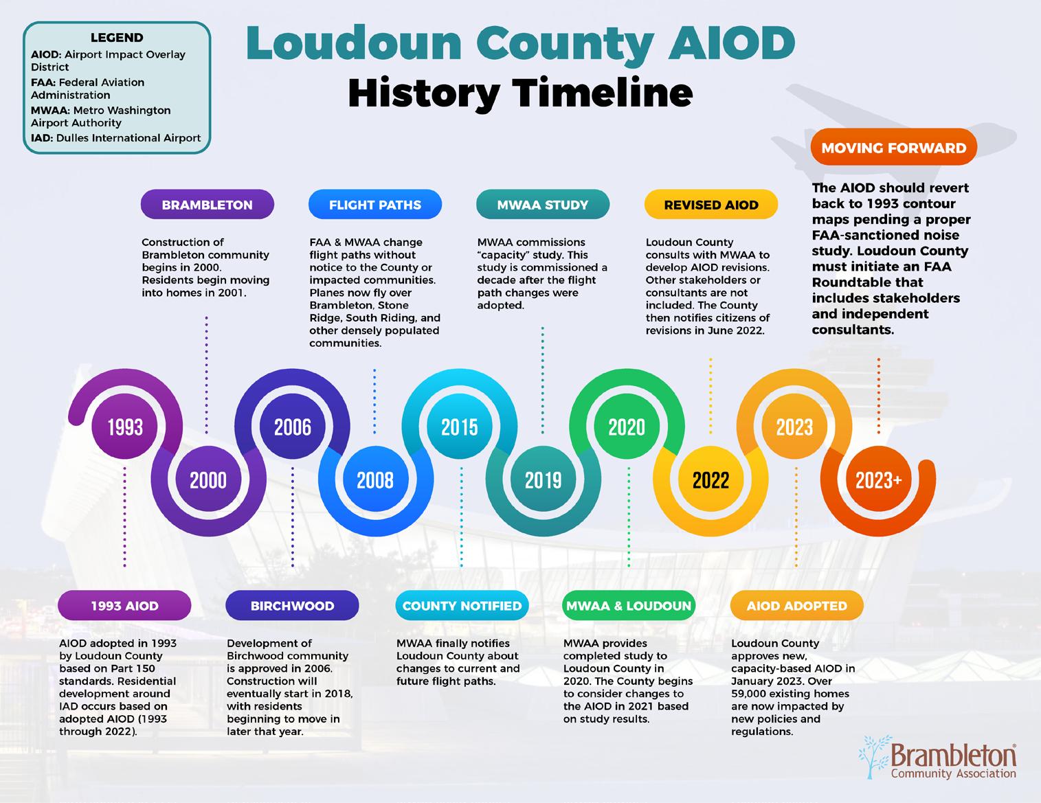 Last but not least, BCA continues to engage Loudoun County on revising its Airport Impact Overlay District (AIOD). Please read the two AIOD articles in this issue that go into detail on where we stand with the current AIOD, how we got here, and what resolutions we are seeking. This work is essential to maintaining a high quality of life for Brambleton residents, and a fact-based, balanced approach is needed moving forward. I look forward to working with Loudoun County, community partners, Brambleton residents, and more on all of these important matters that will impact the continued growth and success of our great community.