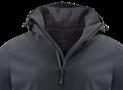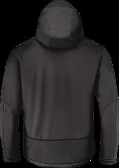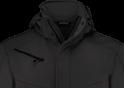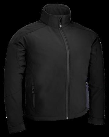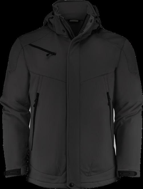 Wind and water repellent softshell jacket. Two side pockets with zips and one inner pocket. Patch pocket on sleeve with zipper. Adjustable drawstring at bottom hem and Velcro® adjustable cu s. Curved back side of garment, longer the front.