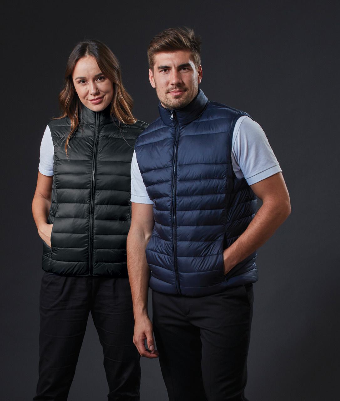 Unisex pu er vest with two outside zip pockets, and one inside pocket with exit for ear phones. Micro fleece lining in collar. The lining can be opened for ease of decoration.