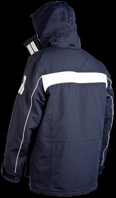 Unisex lightly padded classic sailing jacket. Breathable, wind and waterproof jacket with taped seams. High fleece lined collar and detachable hood. Large distinct reflectors and reflective piping at the front. Drawstring at waist and hem. Four front pockets and one inner pocket with exit for earphones cable. Adjustable Velcro® cu s and hidden inner neoprene cu s. Quilted lining can be opened for ease of decoration.