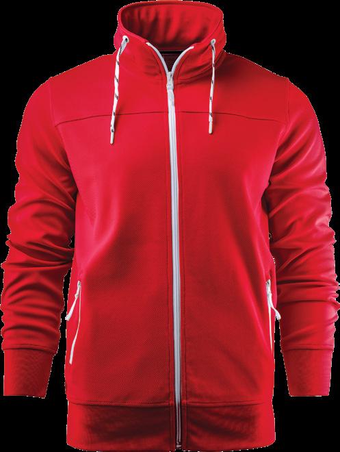 Unisex pu er jacket with two outside zip pockets, and one inside pocket with exit for ear phones. Micro fleece lining in collar. The lining can be opened for ease of decoration.