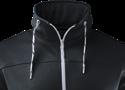 Sporty unisex full zip jacket with zipper at collar for extra detail. Two-coloured drawstring at front and contrasting tape at neck.