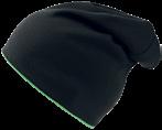 Contemporary knitted beanie, can be worn in di erent ways. Sewn double folded for a thick and stable feeling, the only seams are on top. Comes with a small plastic hanger for easy display.