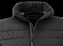 Unisex softshell / lightweight jacket. Yoke and side panels of softshell (fabric 1). Body (front & back) and sleeves of padded lightweight quality (fabric 2). Black trim at cu s and bottom hem. Two-coloured zipper at front and pockets. Additional coloured zip pullers are available to better match your brand.