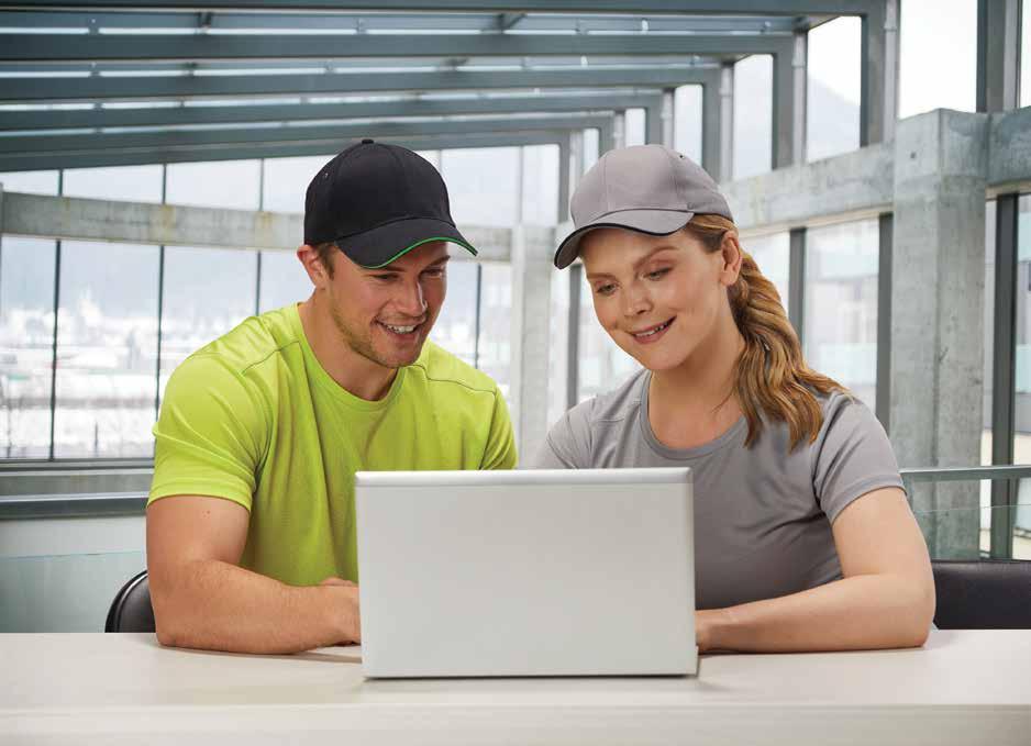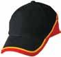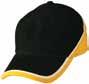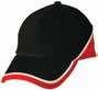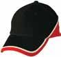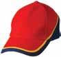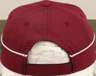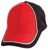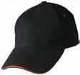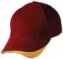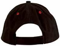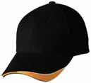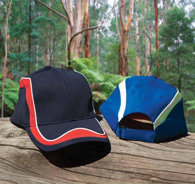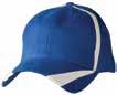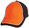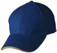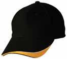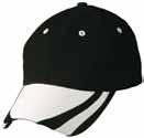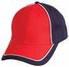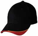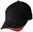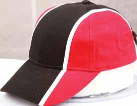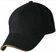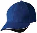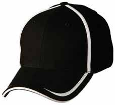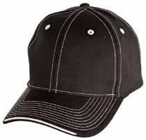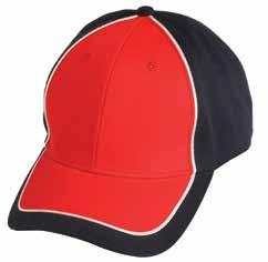 100% premium Cotton twill. 6 panel structured laid back front, pre-curved & velcro crossover. Contrasting peak and crown with piping.
