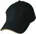 6-panel structured, laid-back front. Pre-curved peak with contrasting sandwich. 4 metal Eyelets on 4 panels & tuck in Fabric Strap with gun metal buckle.