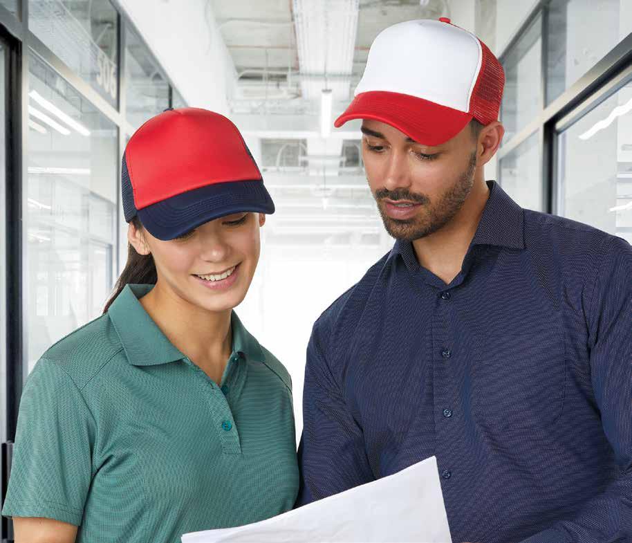 100% Polyester mesh. 6-panel unstructured design. Pre-curved peak, Short crossover velcro closure. Padded Cotton sweatband. Stitched Eyelets. Made from breathable, colour-fast mesh Fabric.