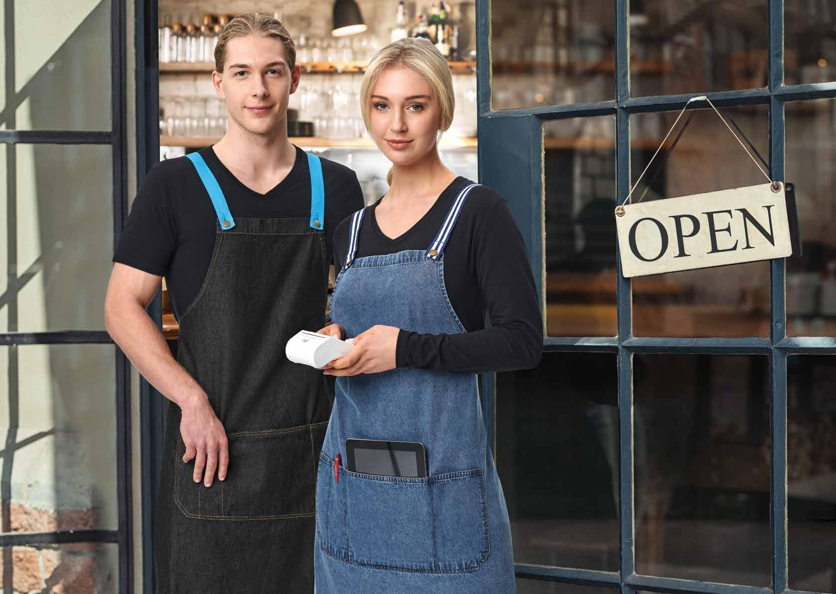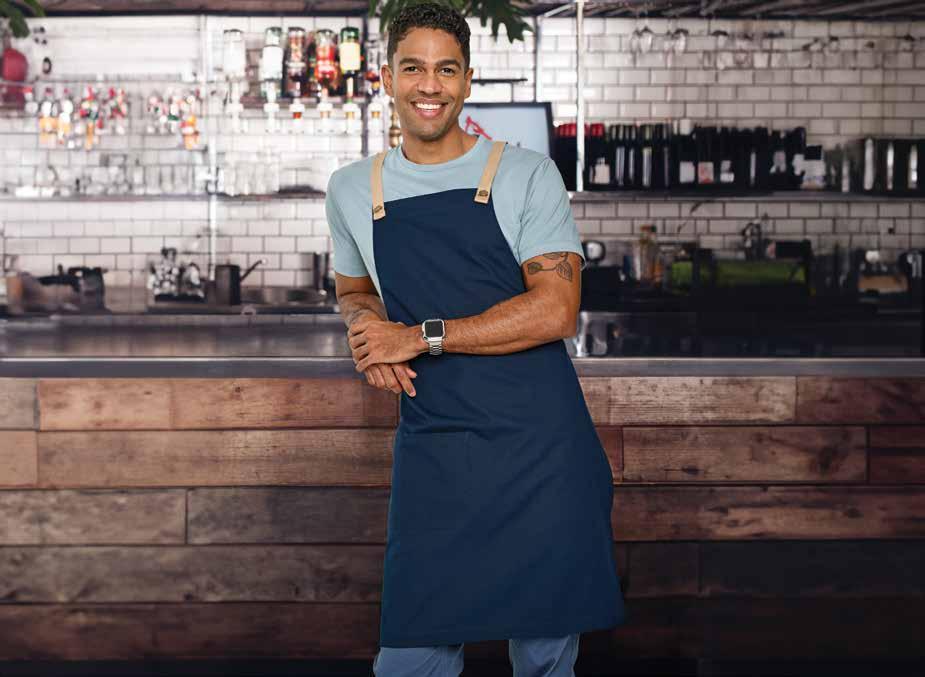 • Back collar press stud tab loop for apron straps.