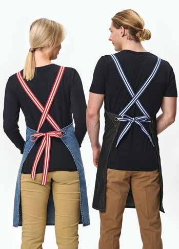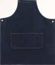 240gsm - 100% Cotton. Cross back Denim Bib Apron with antique brass eyelets and studs, contrast denim stitching. Apron includes 4 front pockets. Large top