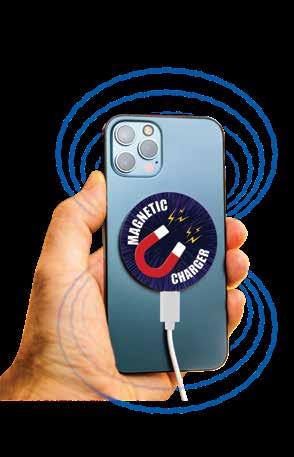 • Round inductive wireless charger, compatible with phones that offer wireless charging.