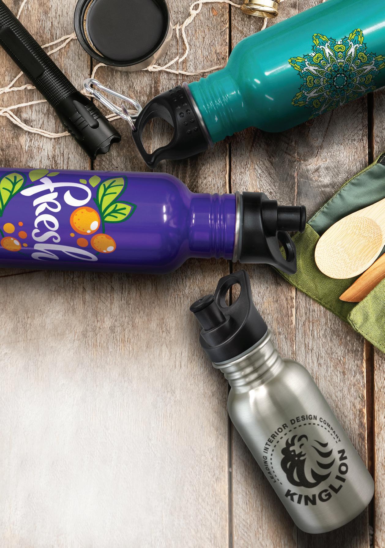 • Lightweight 600ml aluminium bottle with a shiny painted finish