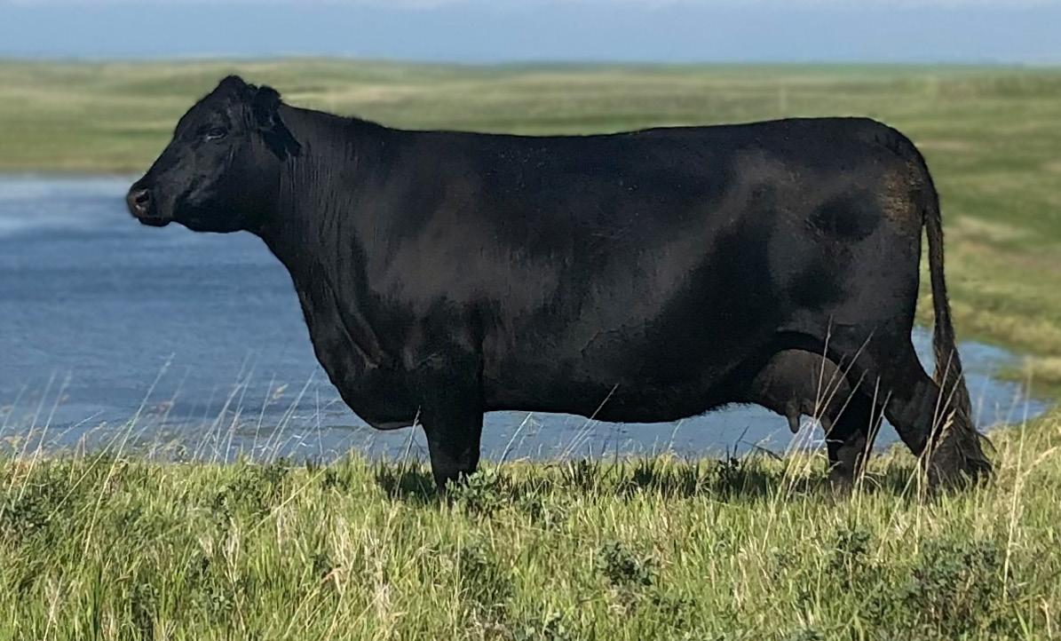 Superior feet, maternal and paternal fertility, and production performance provide a resilient and revered foundation of strength for Lot 44. He is backed by five Pathfinder pedigrees out of eight: Mohnen Substantial 272, Sitz Top Game 561X, Ellingson Roughrider 4202, S A V Resource 1441, and G A Colossal Anne 240, who earned a 106 wean ratio on eight consecutive calves before she was sold bred at our 2021 Annual Female Sale. Resilient’s 429 dam is on track for Pathfinder ® status as well: she earns a 105 wean ratio on her first two progeny and is AI bred to Resilient again. Our first set of Resilient daughters are delivering calves now, and they are tremendous mothers with excellent fertility, udder attachment and teat structure. A few have been protective at birth so I pay strict attention to Resilient matings to ensure docility is protected on the maternal lineage. Resilient 429’s dam has excellent docility.