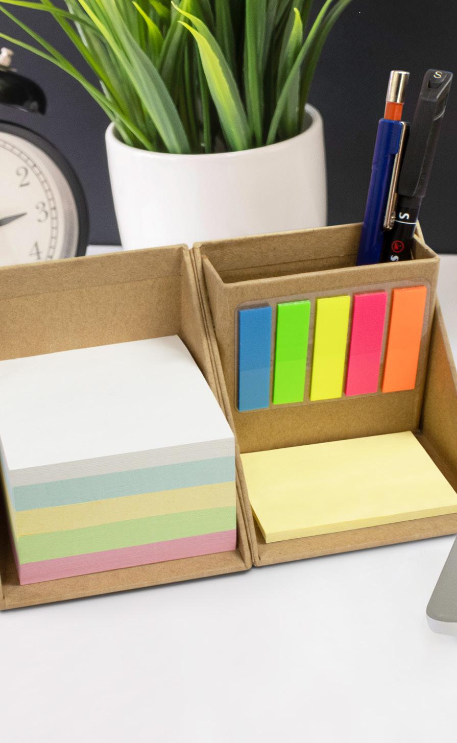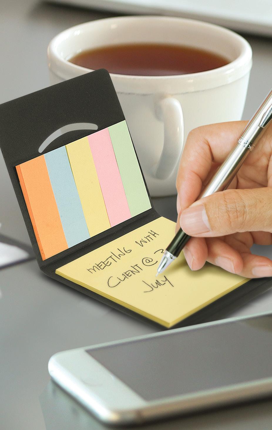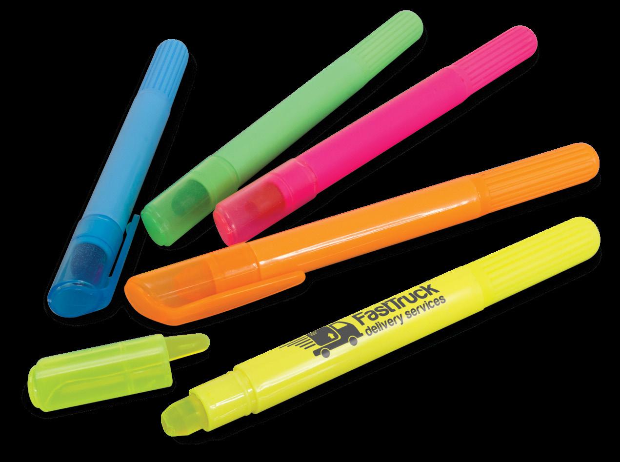 Set that comes with five different coloured highlighters Presented in a stylish plastic case that doubles as a handy desk stand