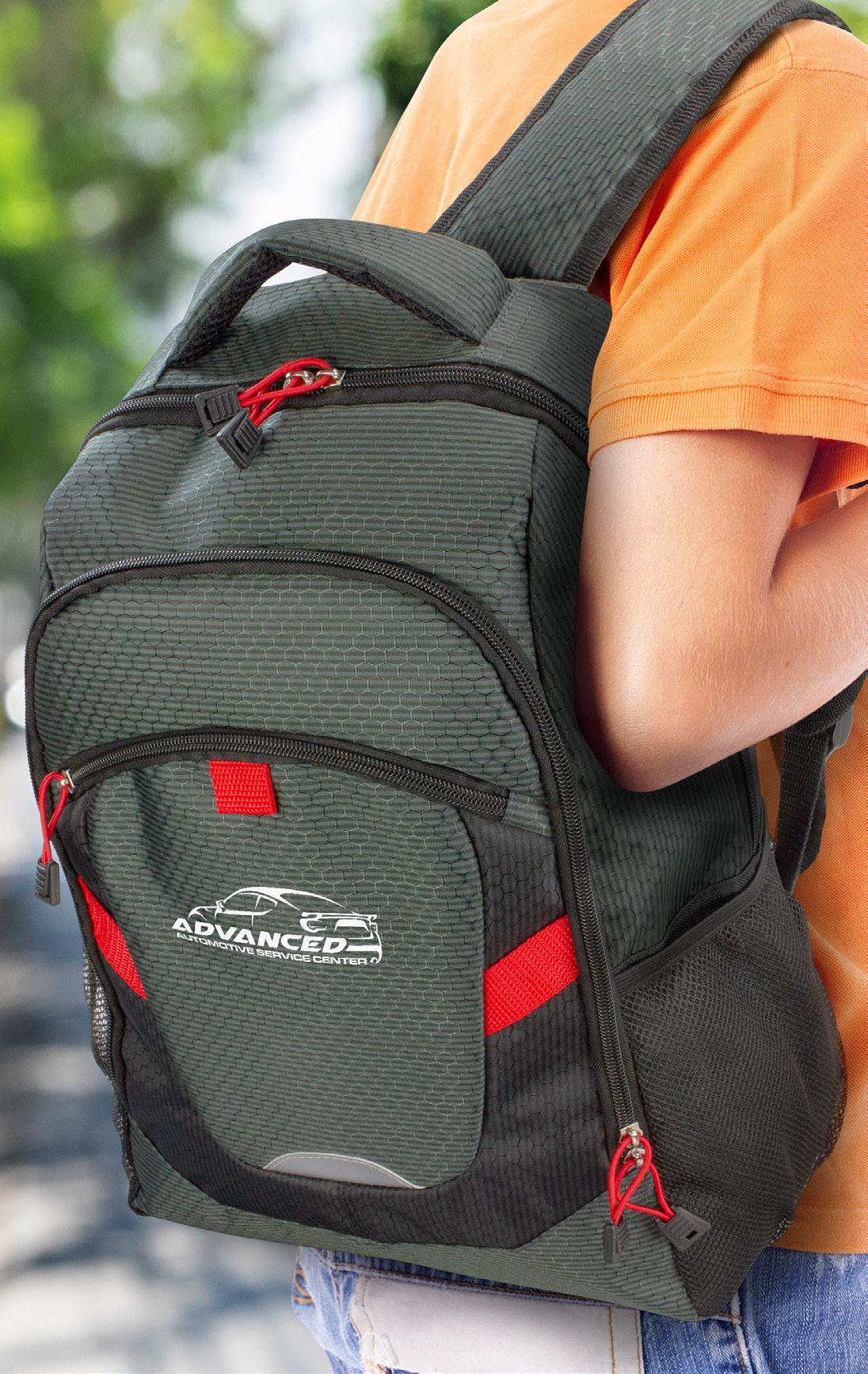 • Carry handle and a matching zippered top closure with a canvas zipper pull