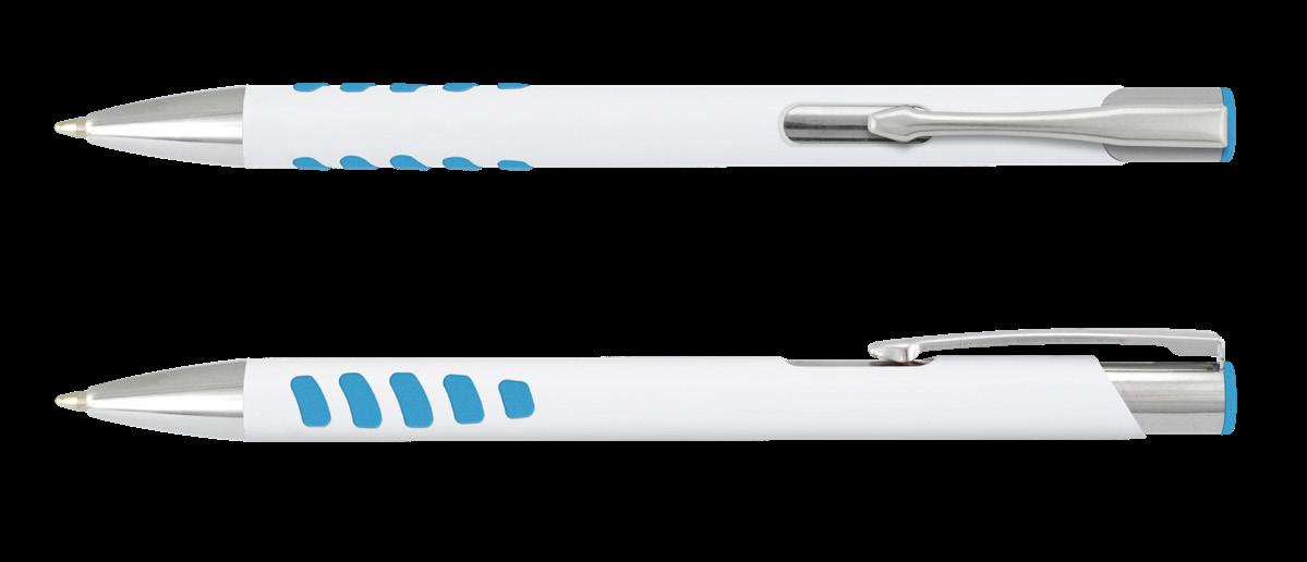 • Retractable aluminium ballpoint pen with a painted gloss white barrel
