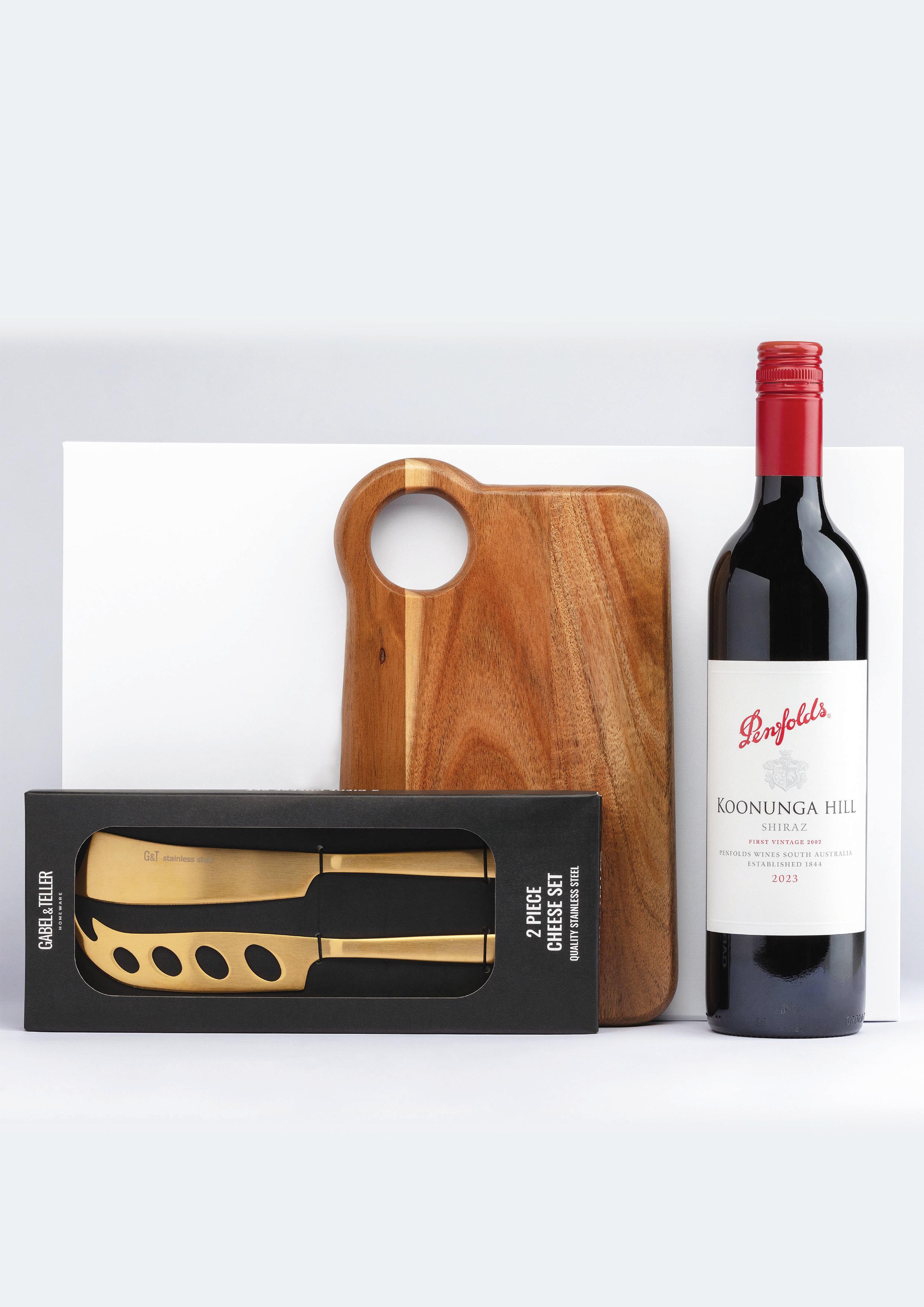 Lift open the crisp white box and you’ll find everything needed for a quiet toast or a shared celebration. A weighty gold cheese knife set. A bottle of carefully chosen wine. And nestled below, a warm acacia wood cheeseboard – the kind you’ll want to use again and again.The Classic Pairing is thoughtful without trying too hard. Whether it’s a welcome, a milestone, or a genuine thank you – this is the kind of gift that leaves an impression.