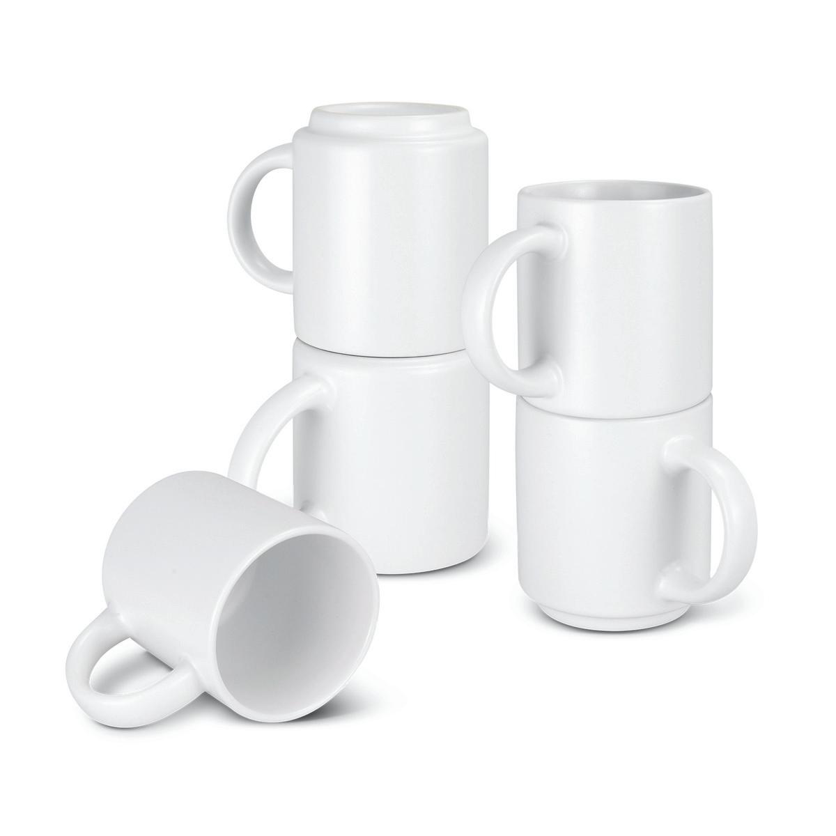 The Arista Stackable Coffee Mug is a 375ml ceramic mug designed for everyday coffee moments. Its smooth gloss glaze gives a refined look, while the stackable shape helps keep cupboards organised and clutter free. Practical and polished, Arista suits office kitchens, events or gifting, and is presented in a natural gift box. Hand Wash. Suits full colour wrap prints.
