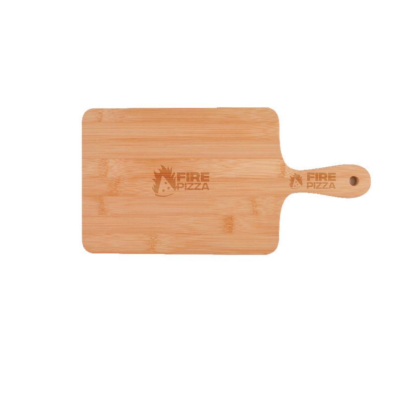 Versatile bamboo serving/cutting board with integrated handle and hanging hole.