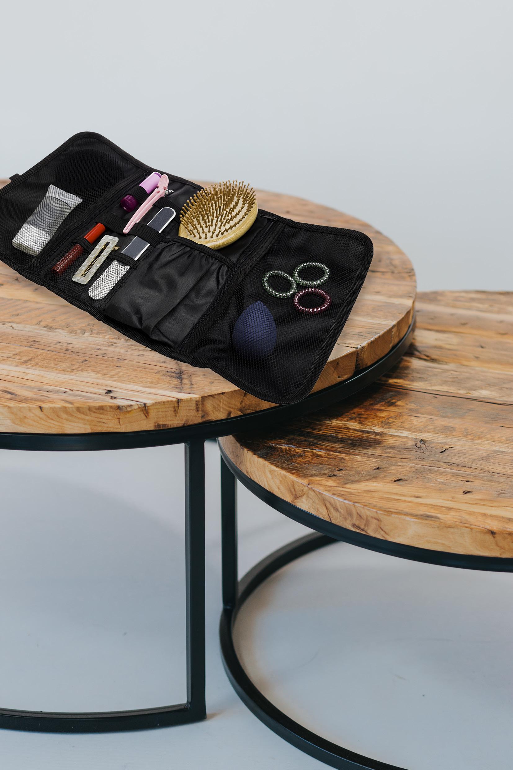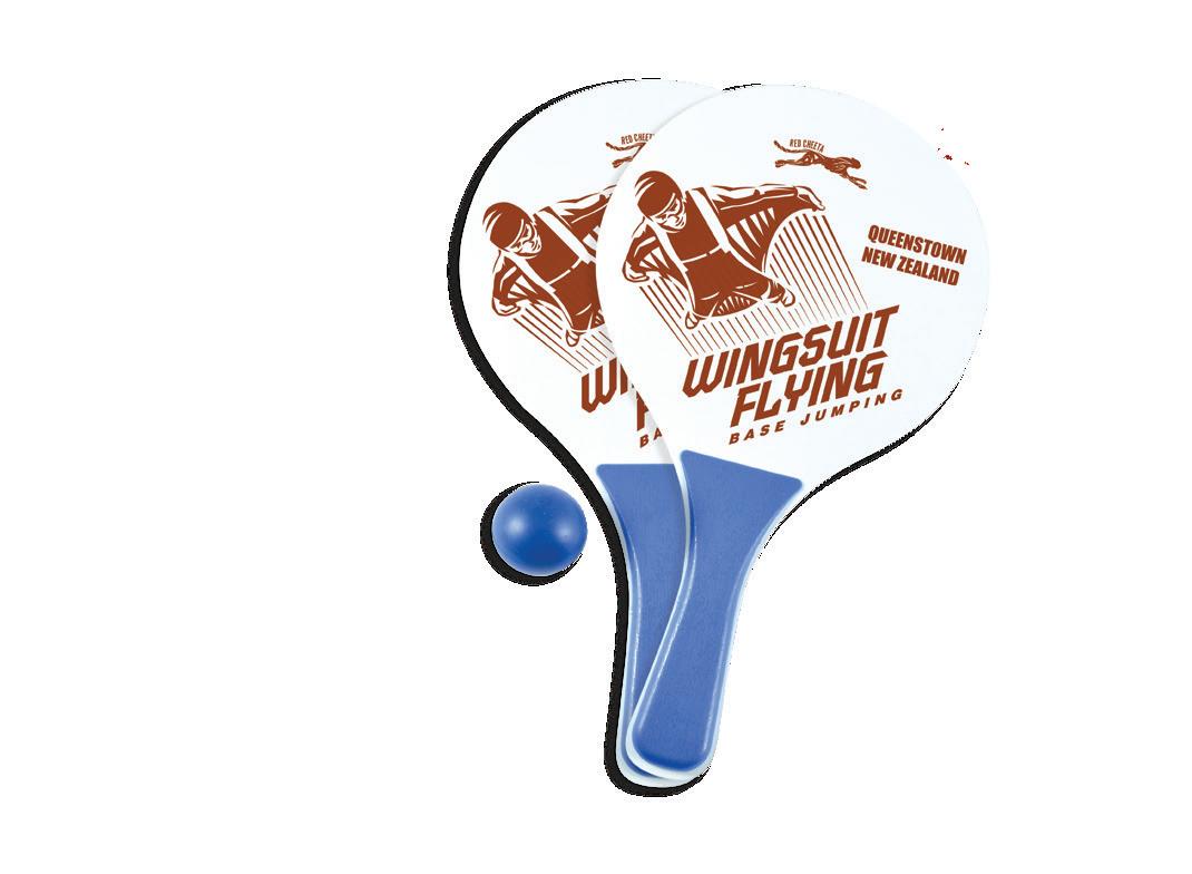 Set includes 2 paddles and a ball packed in a black drawstring pouch.