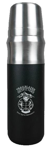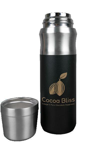 Stylish, powder-coated, double-wall vacuum-sealed stainless steel Drink Bottle designed for hot and cold beverages, featuring a twist-open lid and carry handle.