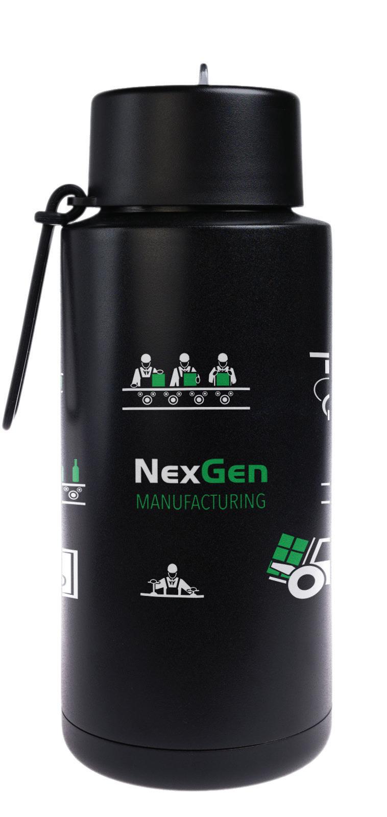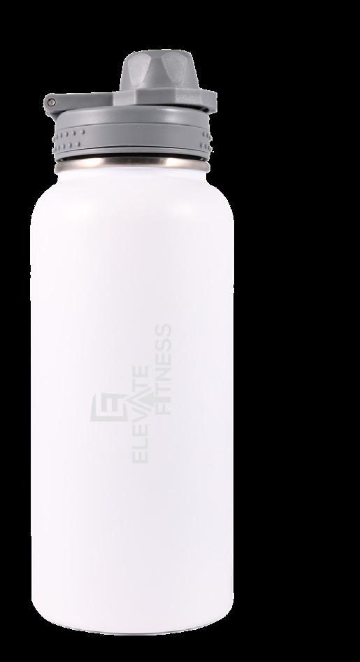 Double-wall stainless steel bottle with screw-on sip lid, stainless steel straw, and silicone carry strap. Available in Matte Black or Gloss White. Capacity: 1 Litre.