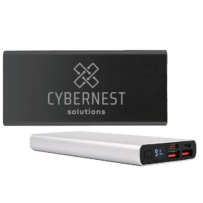 10,000mAh, dual USB & Type C ports, 22.5W output, aluminium shell, LED display. Includes 50cm Type C to Type C cable. Available in Black or Silver.