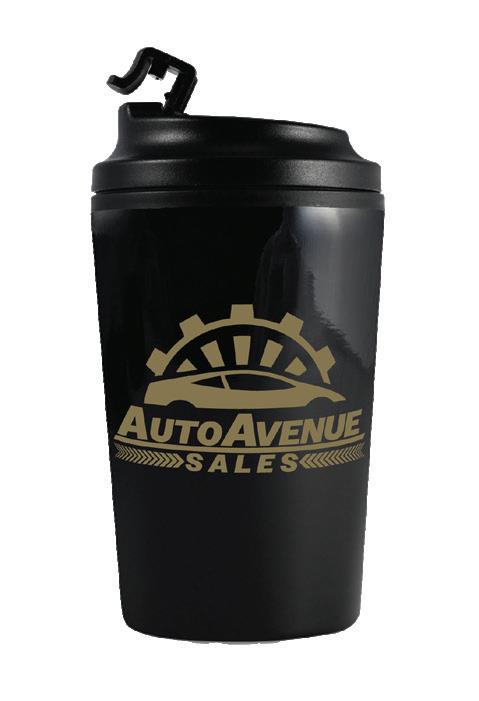 A double-wall cup with a black PP inner and a stainless steel outer. The unique sliding lid features an easy-to-drink opening, providing convenience on the go. Capacity: 390ml.