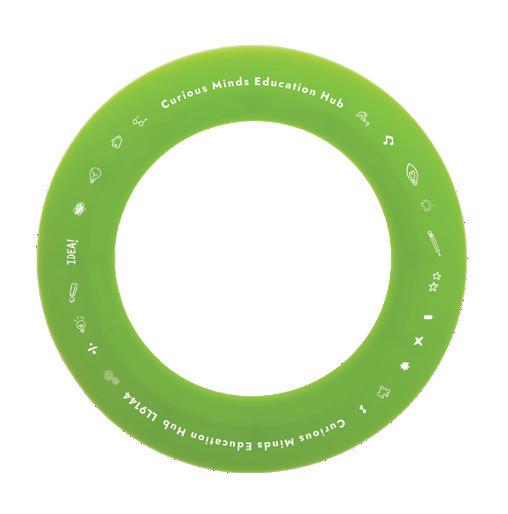 Silicone flying disc with hole in the center. Soft, safe, easy to catch, glides smoothly. Wearable on wrist. Available in six colours. Great for all ages.