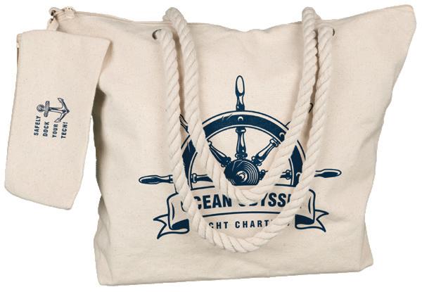 510gsm canvas tote bag with two sturdy rope handles and a convenient zipper closure. Features a detachable zippered internal pouch sized for most mobile phones. Spacious bottom gusset.