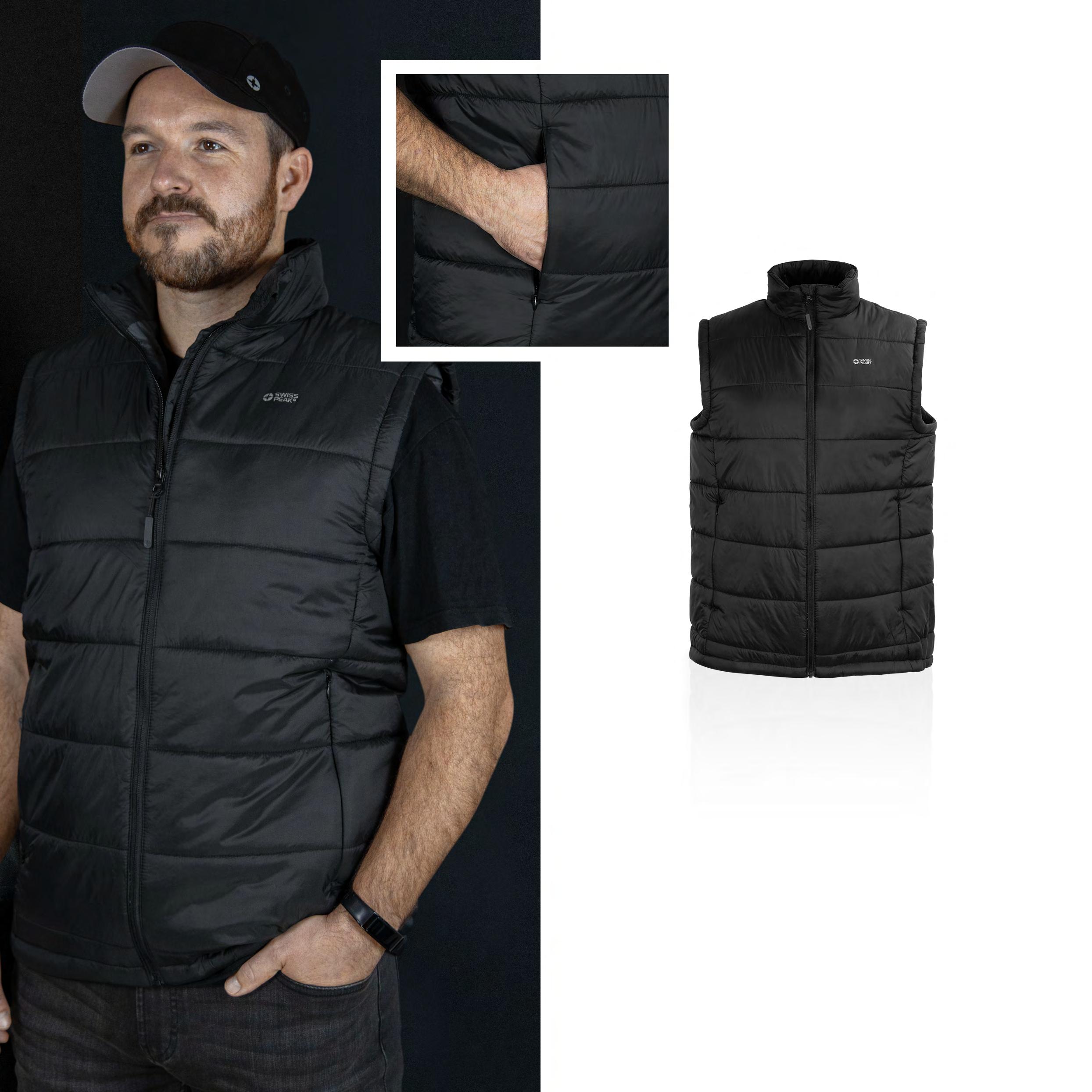 • Puffer jacket made from 20D nylon shell and Polyester Swiss Peak printed lining