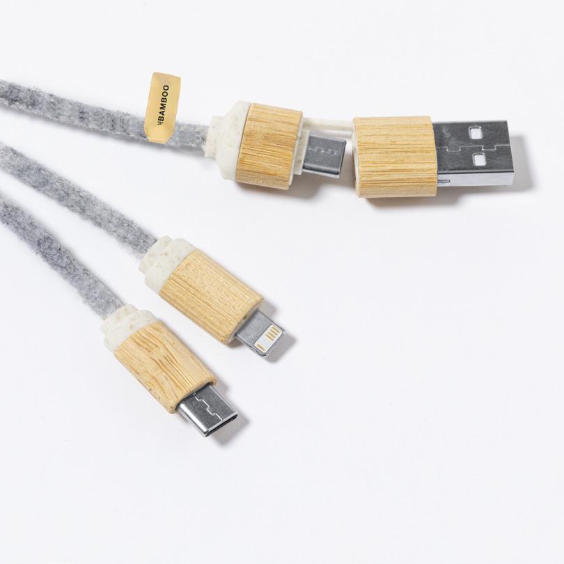 Charging Cable. Felt RPET/ Bamboo Micro USB, Type C and Lightning Connection 5V DC 2.4A.