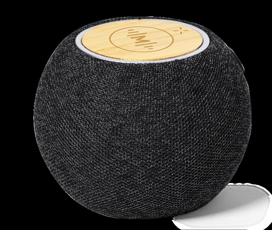 Speaker. Recycled Aluminium/ Bamboo. Bluetooth Connection. Sound Power 3W. Battery 300 mAh.